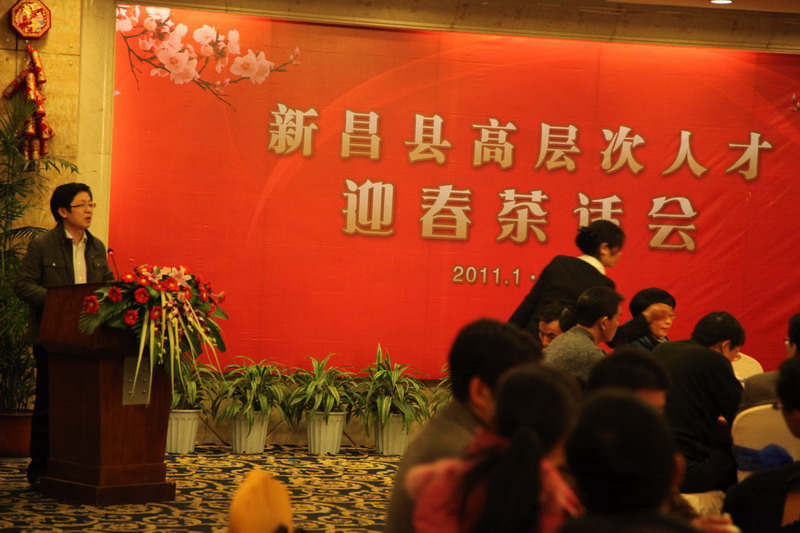 1月13日,,,,我公司人力资源总监雷新权、研发中心朱建荣博士及制剂外贸部司理张春华加入了在白云山庄举行的新昌县高条理人才迎春茶话会。。。。县委常委、组织部长金水法出席聚会,,,,全县高条理人才代表、企业人才事情代表与相关部分向导加入茶话会。。。。