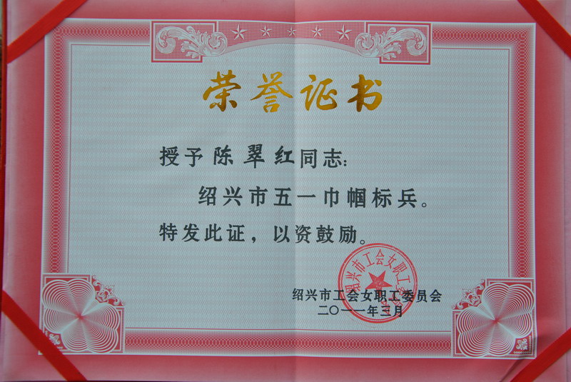 日前获悉,,, ,药品制造公司库管科科长陈翠红获得了“绍兴市五一巾帼尖兵”的声誉称呼,,, ,这是对陈翠红恒久在客栈治理这一通俗的岗位上作出了欠亨俗效果的最好肯定。。。。