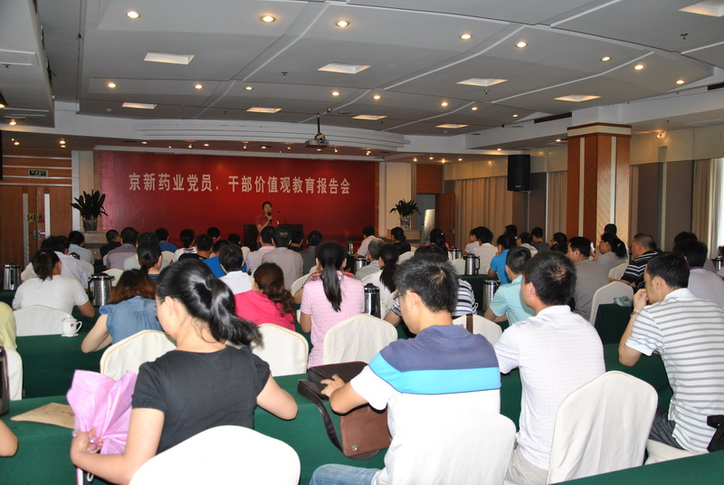 6月17日,,,,,公司党委在鹤群大旅馆八楼天姥厅组织了一次主题为“党员、干部价值观教育”报告会。。。。报告由县直机关党工委书记赵明尧主讲。。。。公司新昌基地全体党员和中高层治理干部近70人加入了报告会。。。。
